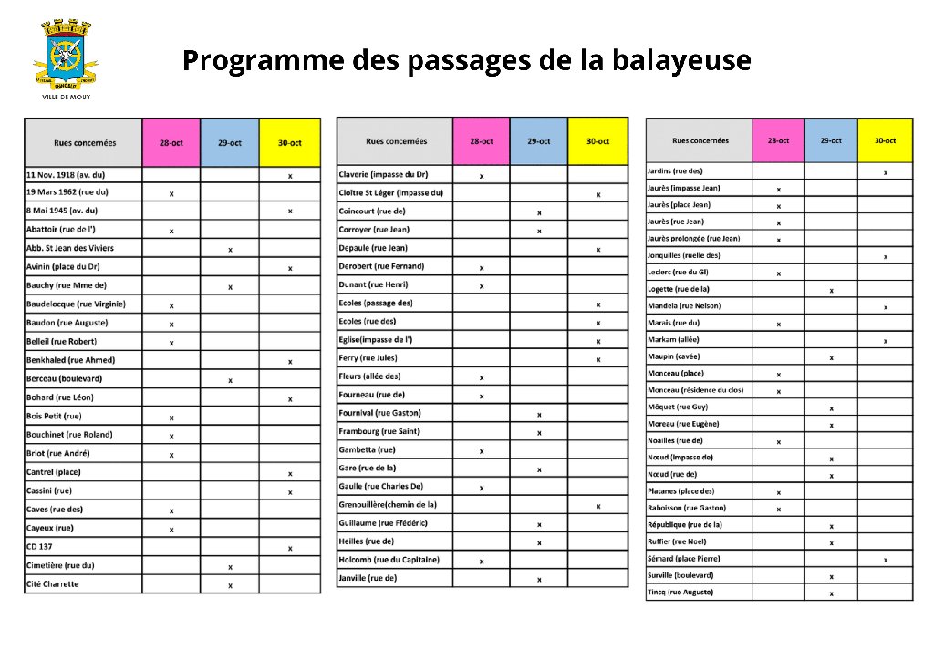 PASSAGE DE LA BALAYEUSE LES 28, 29 ET...