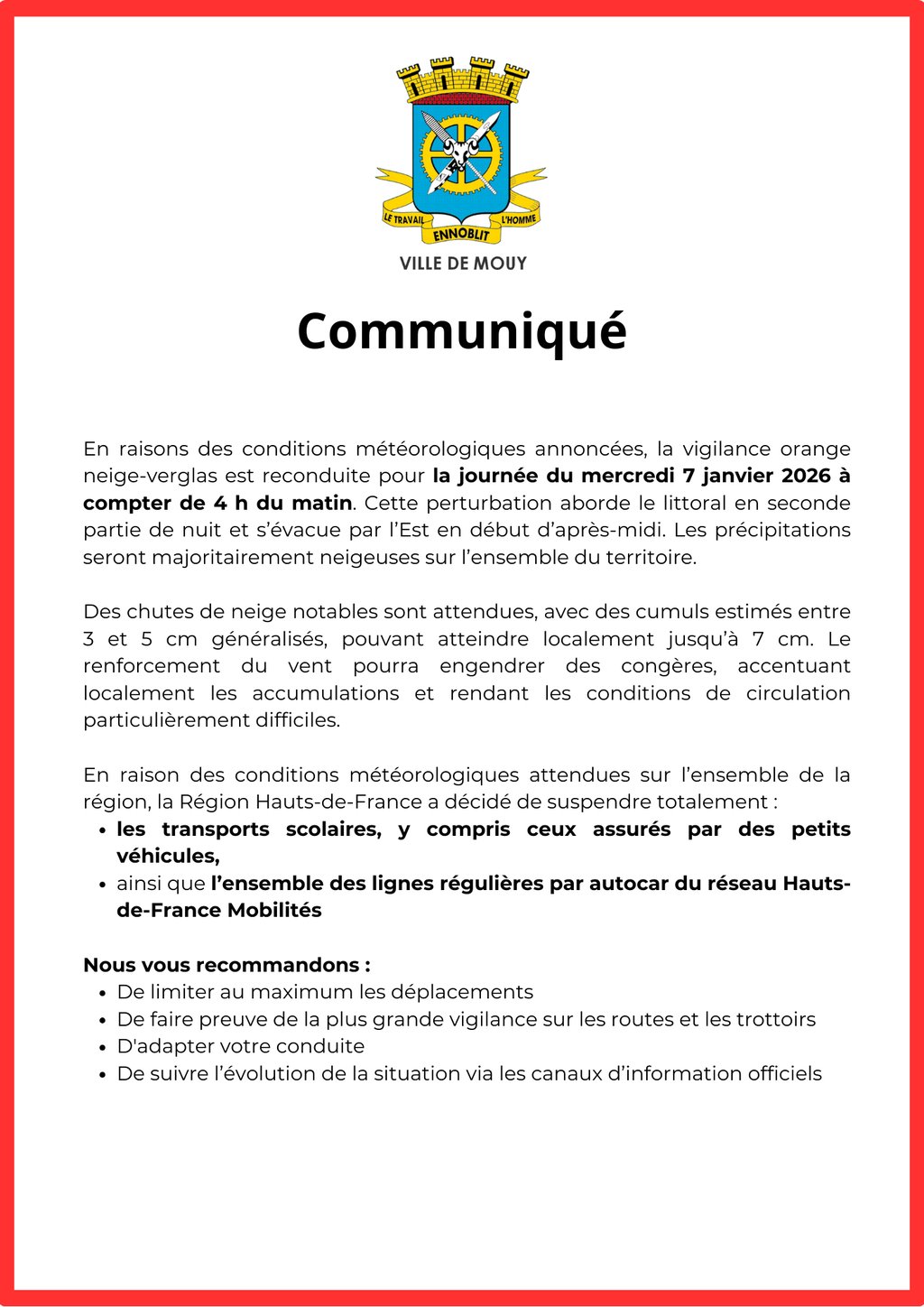 ⚠️ CONCERNANT LE MAINTIEN DE LA VIGILANCE ORANGE NEIGE-VERGLAS & LA SUSPENSION DES TRANSPORTS SCOLAIRES. ⚠️