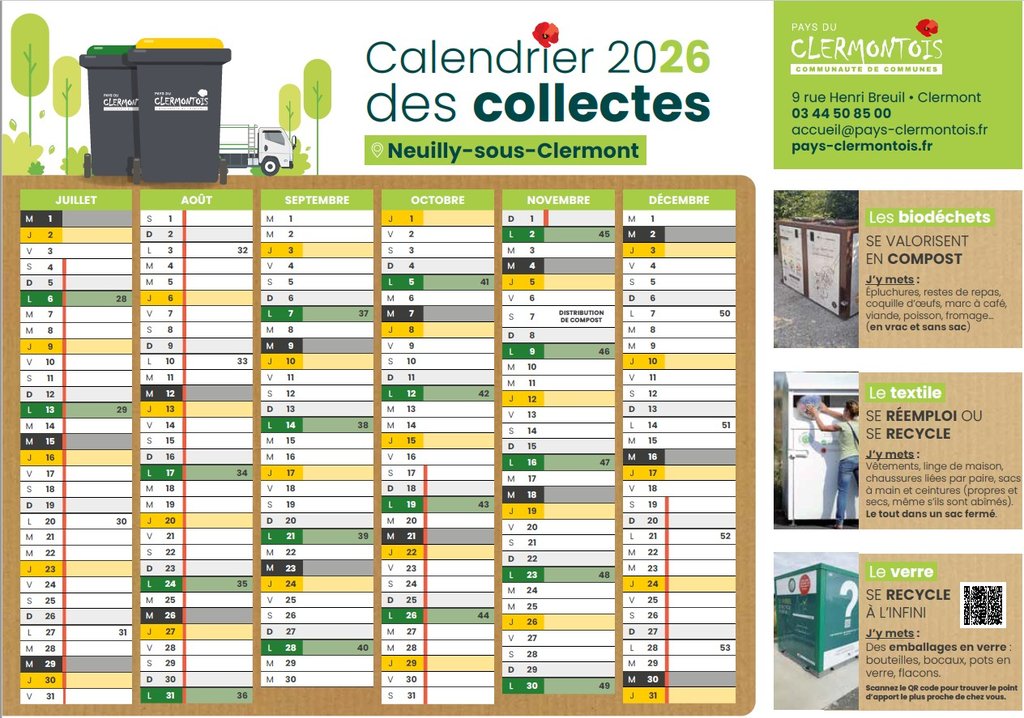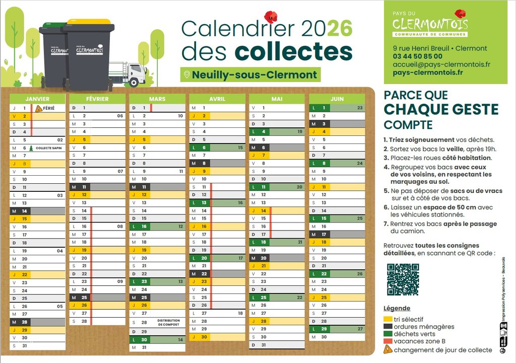 Votre calendrier 2026 vous sera distribué directement dans votre boîte aux lettres à partir du 1er décembre 2025. Si toutefois vous ne l’avez pas reçu, vous pourrez vous en procurer un exemplaire :