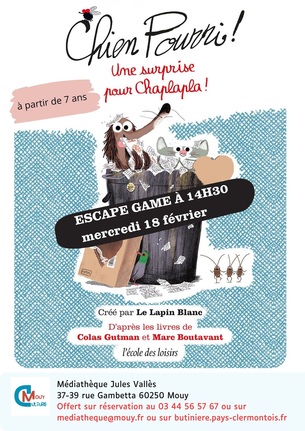 Sur réservation auprès de la Médiathèque de Mouy : 03 44 56 57 67 / mediatheque@mouy.fr